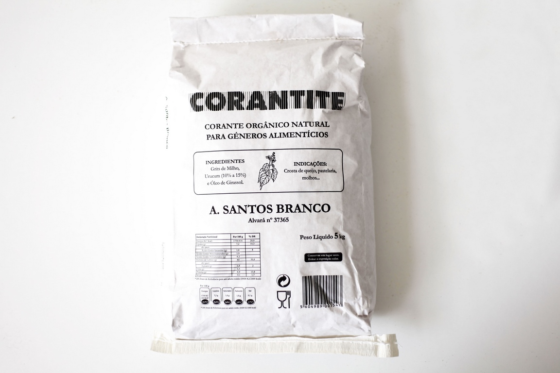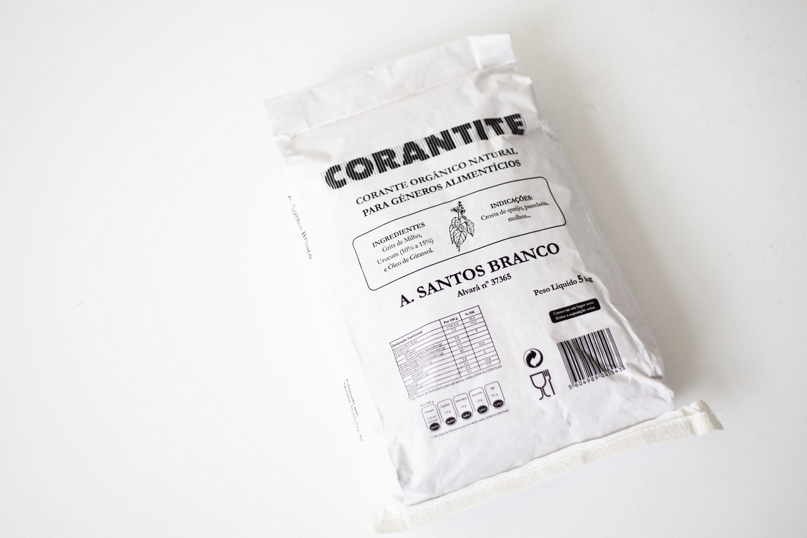 Para géneros alimentícios Ingredientes: Urucum, 10 a 15% diluída em amido e óleo alimentar. Indicações: Crosta de queijo, pastelaria, confeitaria, molhos e culinária.